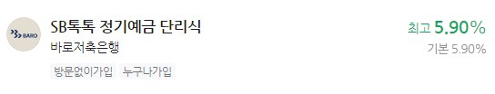 저축은행예금금리비교, 금리높은곳 - 바로저축은행 SB톡톡 정기예금 단리식