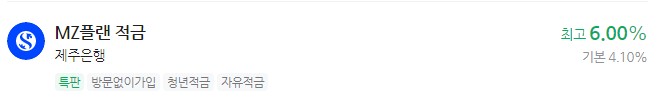 MZ플랜 적금 제주은행 - 적금 이율 높은 은행 추천, 적금금리 높은 곳