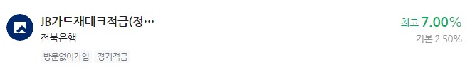 JB카드재테크적금(정액적립식) 전북은행 - 적금 이율 높은 은행 추천, 적금금리 높은 곳