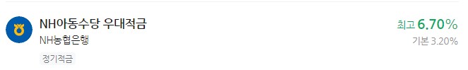 NH아동수당 우대적금 NH농협은행 - 적금 이율 높은 은행 추천, 적금금리 높은 곳